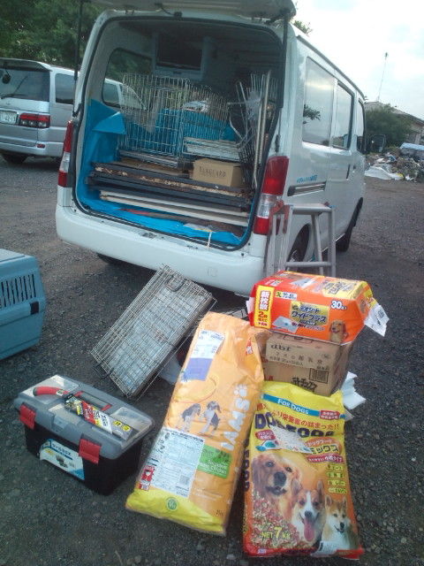 シャッターの中で 暑さと飢えと渇きに苦しむ犬達を思うと どうにも落ち着きません、幸い何匹か 預かりさんも出ましたので 犬達を取りに行って来ます。 (^◇^)┛