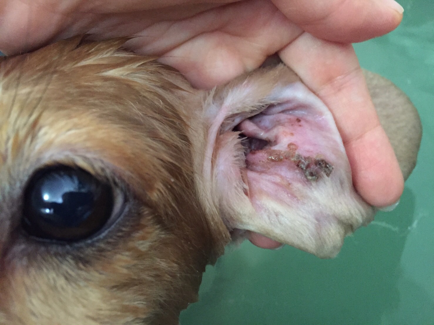 お耳にかさぶたなのかイボなのか