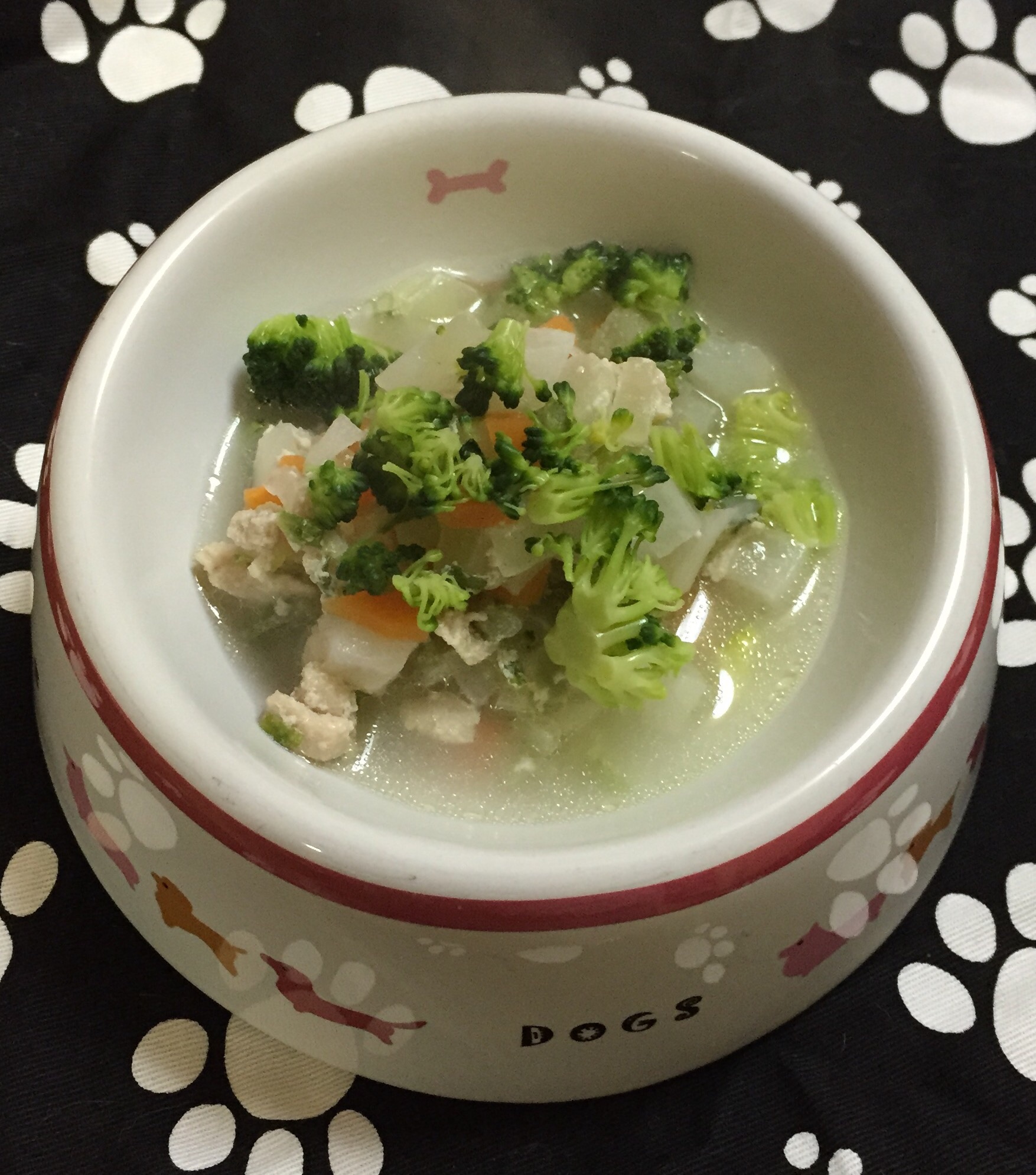 鶏肉・にんじん・白菜・ブロッコリー・カブが入ってます